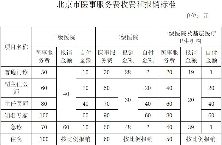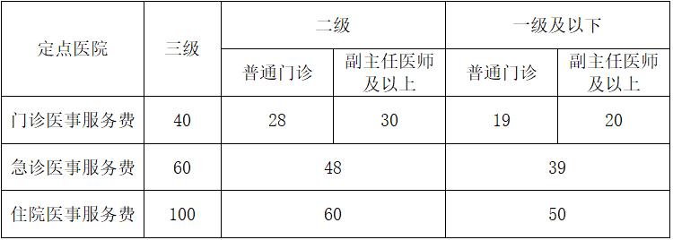 医疗保险基金定额支付门(急)诊医事服务费,现行支付标准如下图: