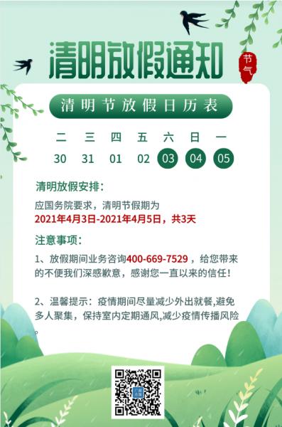 ->2021年清明节放假通知――致客户!